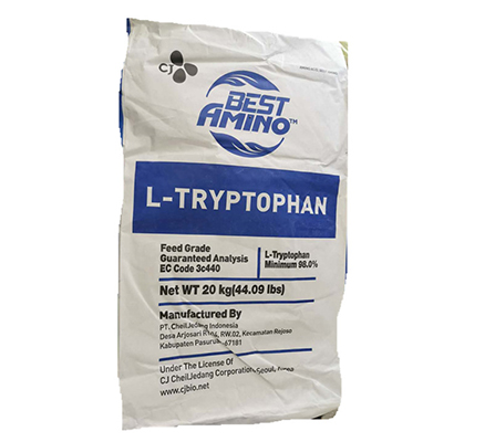 酸,因此,相对于蛋白原料,它能更多地提高饲料中可消化L-色氨酸的水平。L-色氨酸是纯营养性饲料添加剂,无毒副残留,可在各种饲料(包括